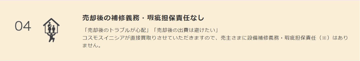 こういった「売却後のトラブルが心配」「売却後の出費は避けたい」という方は買取による不動産の売却を検討していただいています。